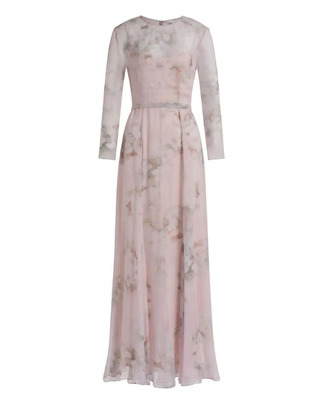 ライトピンク フローラルプリント ロングスリーブ ベルテッドスタイル ラウンドネック マキシ丈 Size: 38. Gender: Female. Material:シルク.