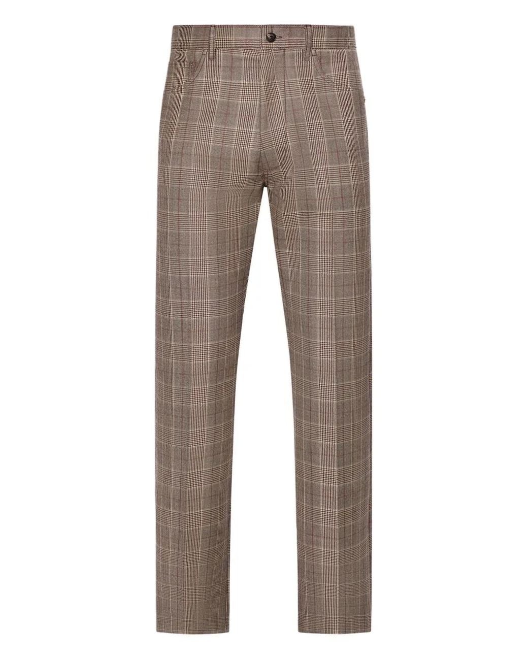 モルトブラウン チェック ボタン留め ベルトループ ファイブポケット ブーツカット Size: S. Gender: Male. Material:ポリエステル/ビスコース/バージンウール/ポリウレタン. カラー: グレー