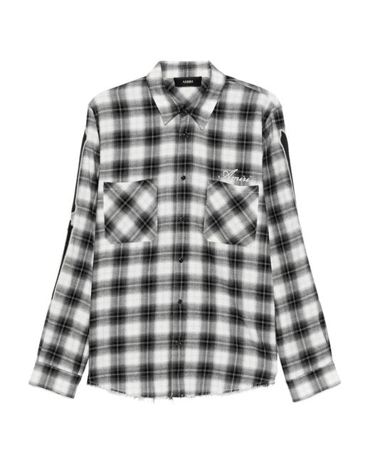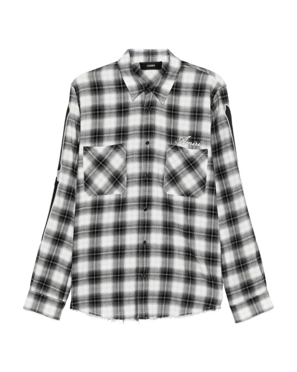 ブラック/ホワイト チェックパターン フリンジヘム 胸元にパッチポケット ロングスリーブ スナップボタン留め 袖口にボタン留め ボーンモチーフ レギュラーカラー Size: XS. Gender: Male. Material:コットン. カラー: マルチカラー