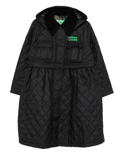 レディース ブラック X Ganni キルティング フーデッドコート