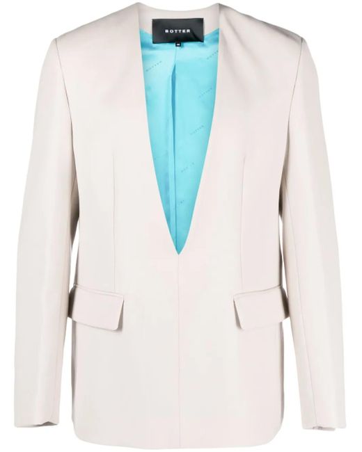 アーモンドベージュ ウール プランジVネック ノーカラー ロングスリーブ フロントにフラップポケット x 2 袖口にボタン留め ストレートな裾 こちらの商品は男女兼用です。メンズサイズでの展開となりますのでご注意ください。 Size: 46. Gender: Unisex. Material:ビスコース.