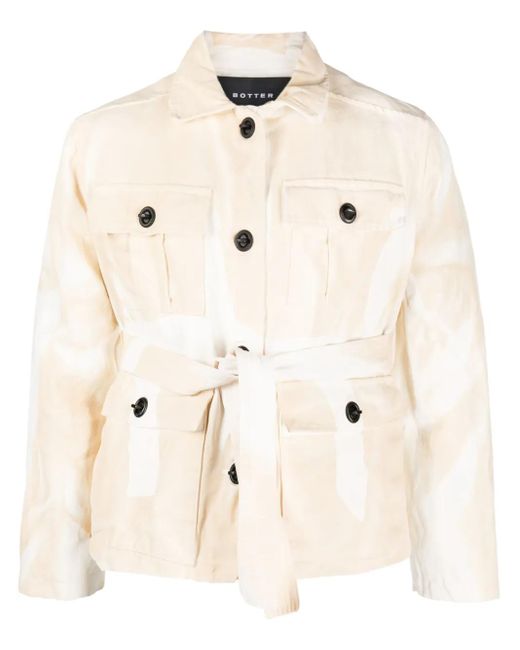 ホワイト/ベージュ Bananatex®(バナナテックス®) スプレッドカラー フロントにボタン留め ベルテッドスタイル ロングスリーブ フロントにフラップポケット x 4 ストレートな裾 こちらの商品は男女兼用です。メンズサイズでの展開となりますのでご注意ください。 Size: 46. Gender: Unisex. Material:Bananatex®/ビスコース.