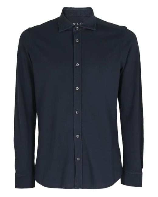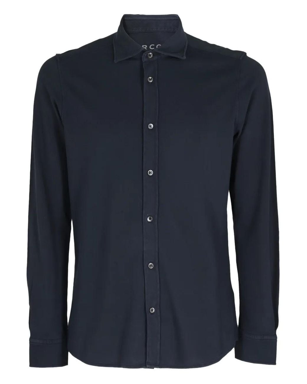 ネイビー 前面にボタン留め スプレッドカラー ロングスリーブ バックカーブドヘム Size: S. Gender: Male. Material:コットン.