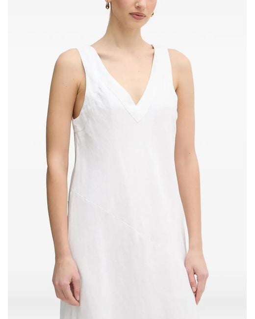 レディース ホワイト Vネックノースリーブ ミディドレス