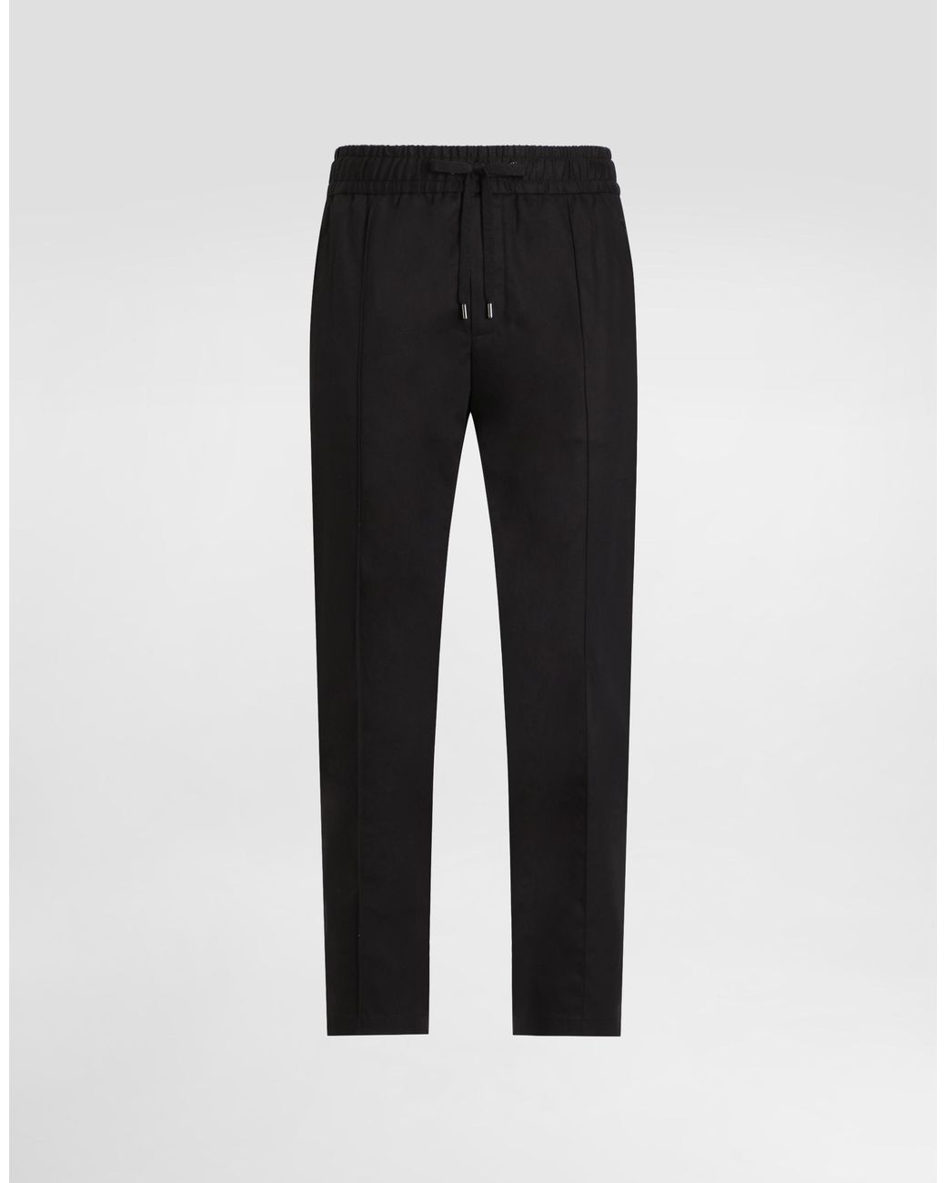 コットンギャバジン製のジョギングパンツ: ブラック モデルの身長は185cmで、イタリアサイズ48を着用 イタリア製 カラー: ブラック
