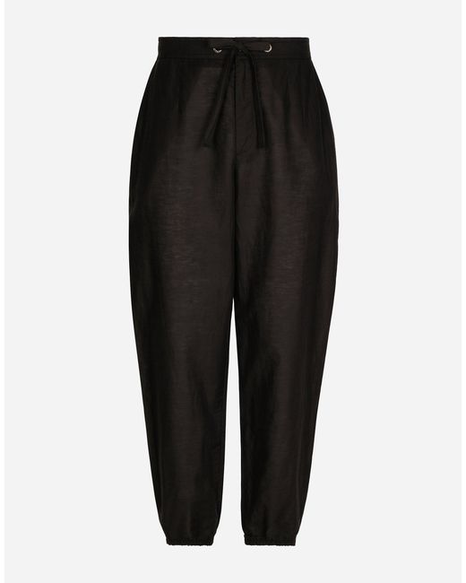 メンズ ブラック ジョギングパンツ リネン&コットン ロゴラベル