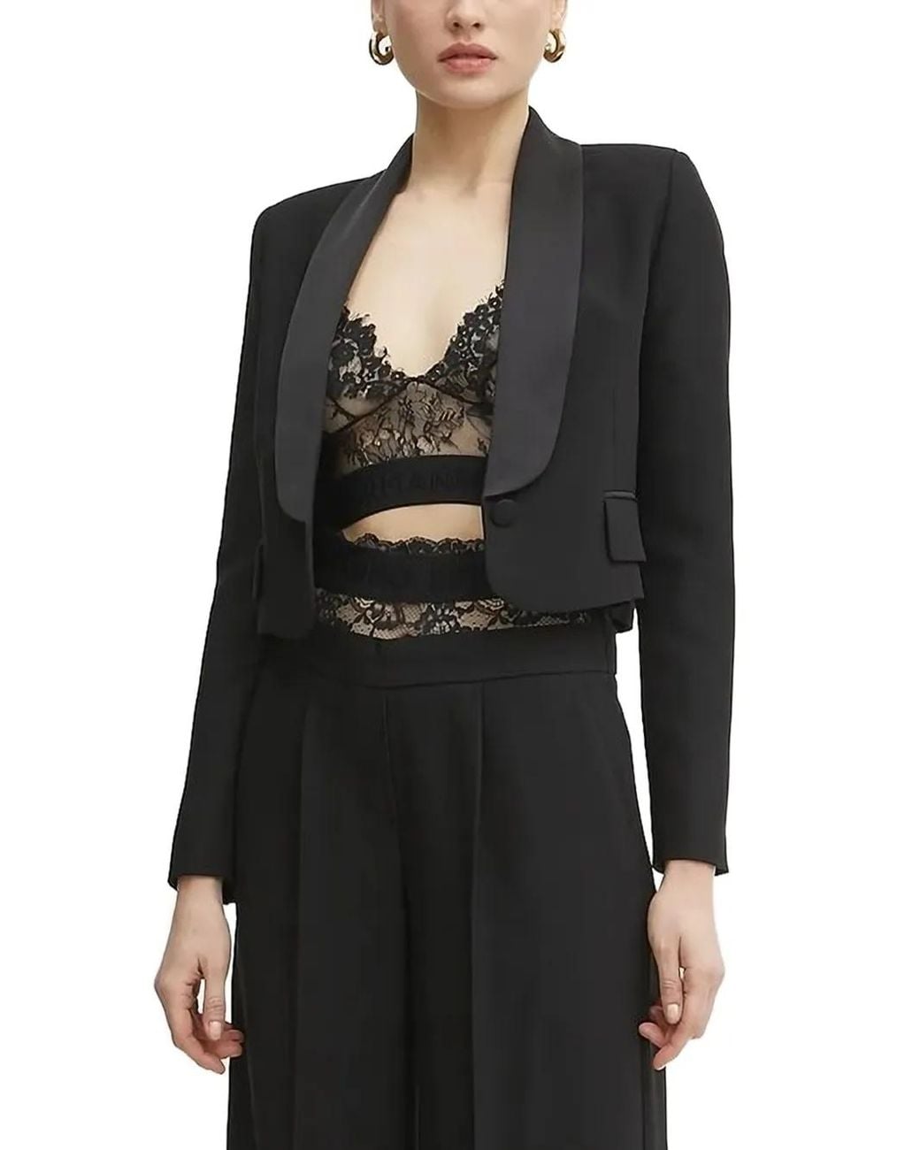 ブラック サテンラペル 1つボタン留め ロングスリーブ ストレートな裾 Size: 40. Gender: Female. Material:ビスコース/ポリエステル/アセテート.