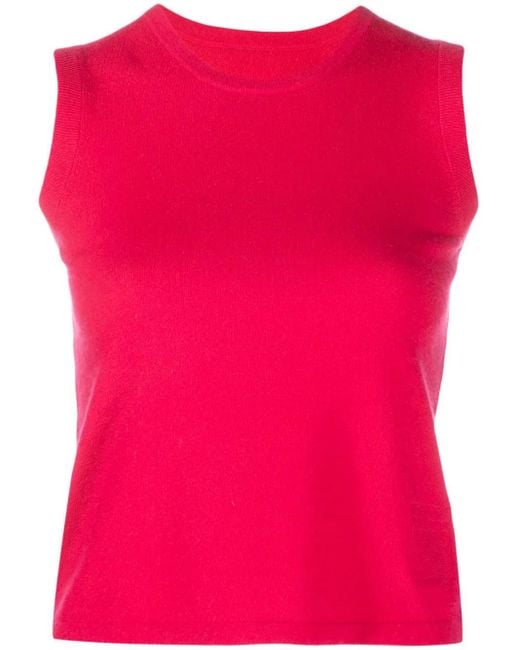 ラズベリーピンク、ストレッチフィット、カシミアブレンド、リブトリム、クルーネック、ノースリーブ、ストレートな裾。 Size: XS. Gender: Female. Material:カシミア/ポリウレタン.