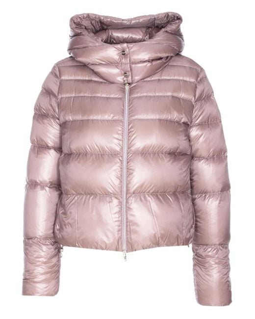 ローズピンク パデッドデザイン ファスナー ロングスリーブ フード ジップポケット Size: 44. Gender: Female. Material:ポリアミド/ダウン/ポリアミド/フェザー.