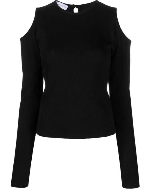 ブラック、オープンショルダーデザイン、カットアウトディテール、オープンバック、ロングスリーブ、ラウンドネック、ストレートな裾。 Size: XS. Gender: Female. Material:コットン/ポリウレタン.
