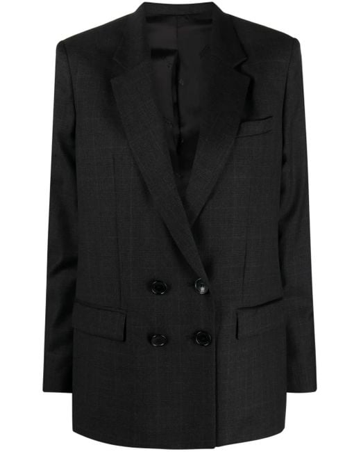 アンスラサイトグレー、バージンウール、プレイド、ダーツディテール、ノッチドラペル、ダブルブレストボタン留め、ロングスリーブ、胸元にウェルトポケット、サイドにフラップポケット x 2、センターベント、総裏地。 Size: 36. Gender: Female. Material:バージンウール/ビスコース.