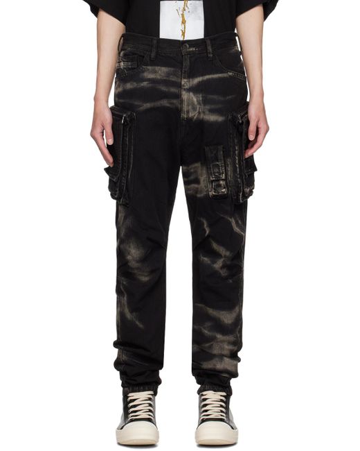 メンズ ブラック デニム ブリーチ カーゴパンツ