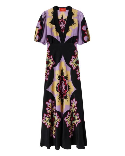フローラル シルクマキシドレス - メタリック