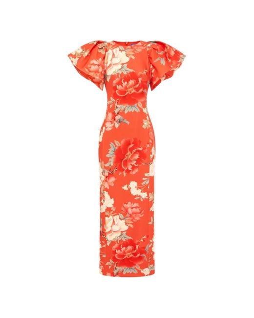 Angela ラッフル フローラル マキシドレス - レッド