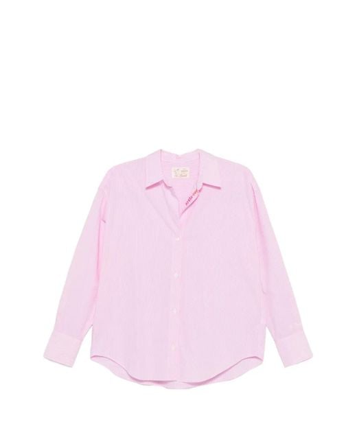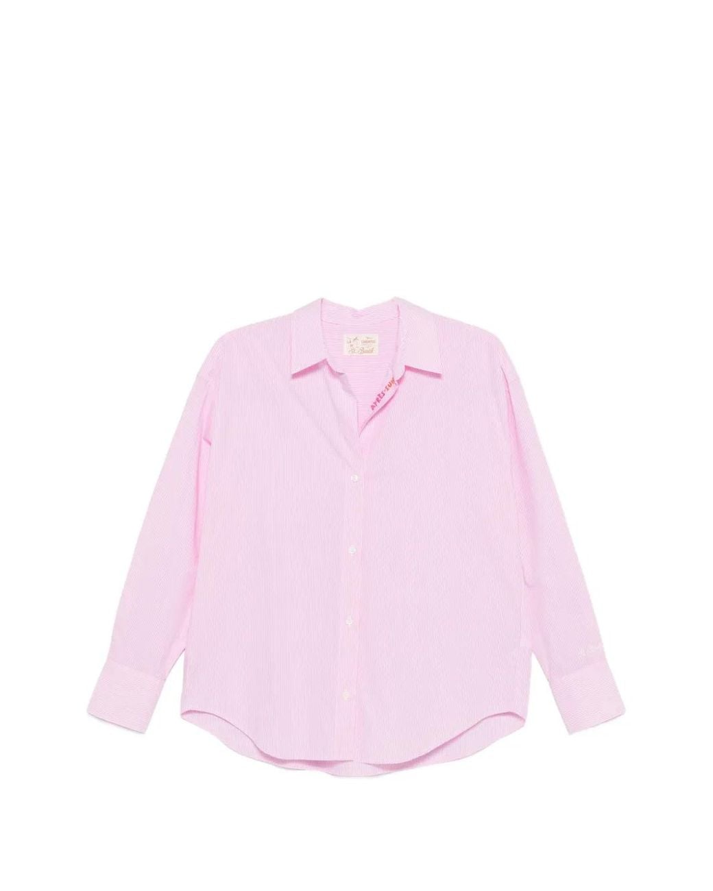 レディース ピンク ストライプ エンブロイダリーシャツ