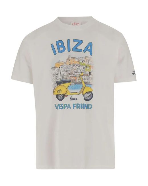 ホワイト クルーネック ショートスリーブ 袖にエンブロイダリーロゴ 前面にグラフィックプリント Size: S. Gender: Male. Material:コットン. カラー: グレー