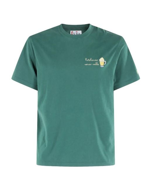 グリーン 刺しゅうディテール ラウンドネック ショートスリーブ Size: S. Gender: Male. Material:コットン. カラー: グリーン