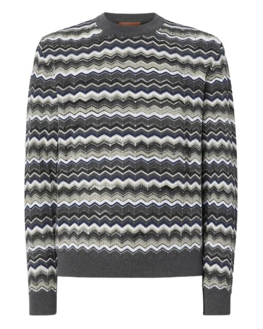 グレー シェブロンパターン リブニット ロングスリーブ クルーネック ストライプ こちらのMissoniの商品は職人によるハンドメイドのため、 実際の商品が写真と若干異なる場合がございます。 Size: 48. Gender: Male. Material:コットン/ウール.