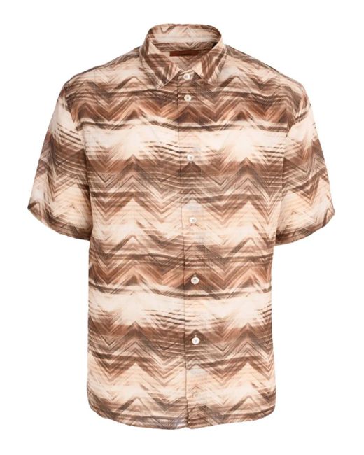 ライトベージュ ジグザグパターン ショートスリーブ ボタン留め ポインテッドカラー フラックス素材 こちらのMissoniの商品は職人によるハンドメイドのため、 実際の商品が写真と若干異なる場合がございます。 Size: M. Gender: Male. Material:亜麻.