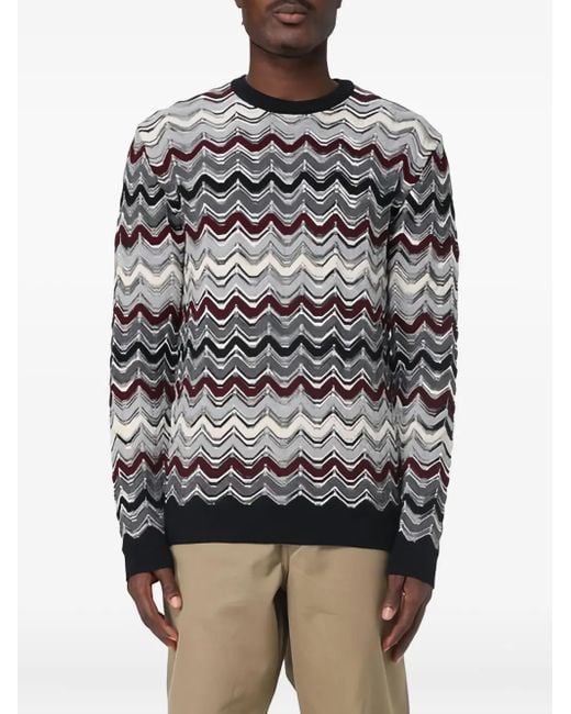 グレー ジグザグパターン クルーネック ロングスリーブ リブ編みのヘム リブ編みのカフス こちらのMissoniの商品は職人によるハンドメイドのため、 実際の商品が写真と若干異なる場合がございます。 Size: 48. Gender: Male. Material:ウール. カラー: グレー