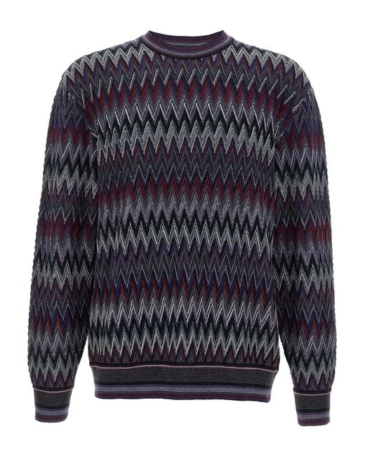 ブルー ジグザグパターン クルーネック ロングスリーブ、カフス ウール リブ編みの裾 こちらのMissoniの商品は職人によるハンドメイドのため、 実際の商品が写真と若干異なる場合がございます。 Size: 50. Gender: Male. Material:ウール.