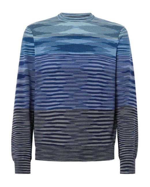 ブルー ウェーブパターン ボーダー クルーネック ロングスリーブ リブ編みのカフス リブ編みの裾 こちらのMissoniの商品は職人によるハンドメイドのため、 実際の商品が写真と若干異なる場合がございます。 Size: 48. Gender: Male. Material:ウール.