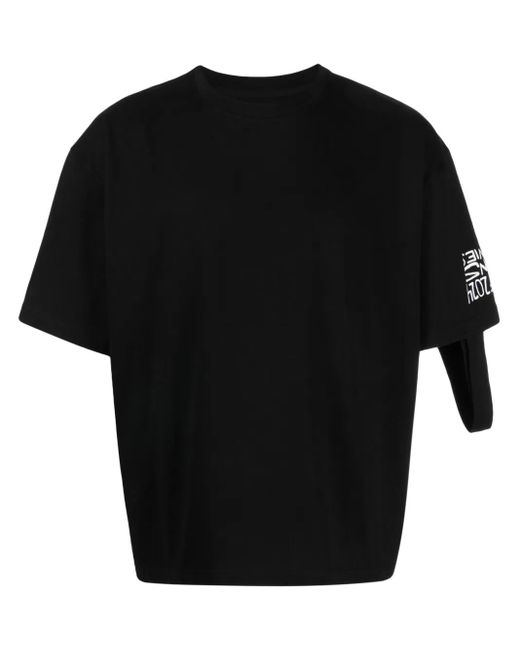 ブラック コットン コンバーチブルデザイン トートバッグとして使用可能 サイドにスローガンプリント バックにグラフィックプリント クルーネック ショートスリーブ ストレートな裾 こちらの商品は男女兼用です。メンズサイズでの展開となりますのでご注意ください。 Size: XS. Gender: Unisex. Material:コットン.