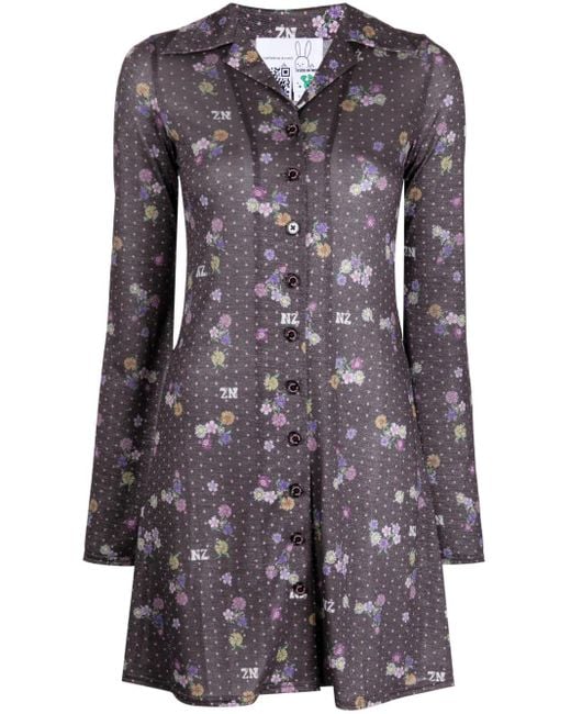 Ssense限定 ホワイト フローラル プリント デニム ミニワンピース - ブラック