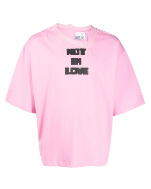 バブルガムピンク、コットン、テキストプリント、ラウンドネック、ショートスリーブ、ストレートな裾。こちらの商品は男女兼用です。メンズサイズでの展開となりますのでご注意ください。 Size: XS. Gender: Unisex. Material:コットン.