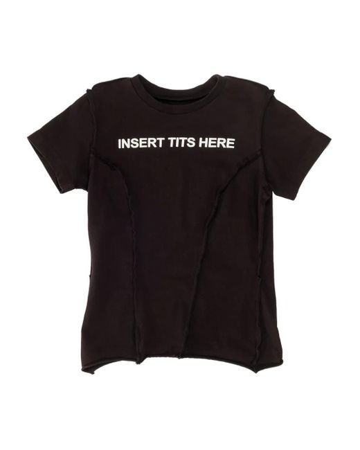 ブラック クルーネック エクスポーズドシームディテール ショートスリーブ Size: XS. Gender: Female. Material:コットン.