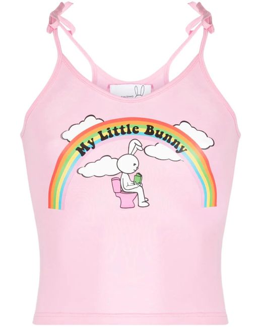 ライトピンク、ストレッチコットン、レインボープリント、ラウンドネック、結び留め、ノースリーブ、ストレートな裾。こちらの商品は男女兼用です。メンズサイズでの展開となりますのでご注意ください。 Size: XS. Gender: Unisex. Material:コットン/ポリウレタン.