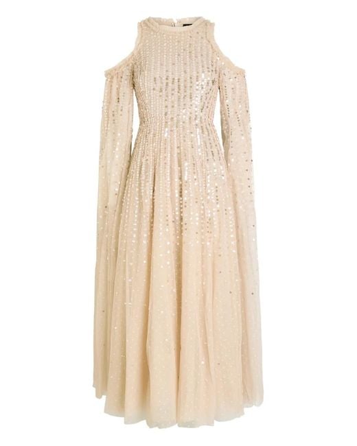 Aurora スパンコール イブニングドレス - ナチュラル