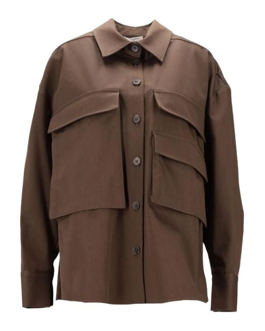ブラウン ボタン留めロングスリーブ 袖口にボタン留め バックプリーツ Size: XS. Gender: Female. Material:コットン. カラー: ブラウン