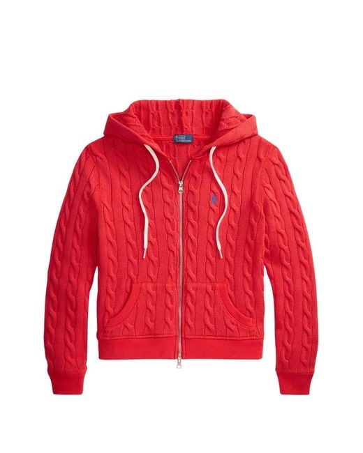 レッド ドローストリングフード ポロポニー ロゴ刺しゅう 前面にパウチポケット リブニットトリム Size: XS. Gender: Female. Material:コットン. カラー: レッド