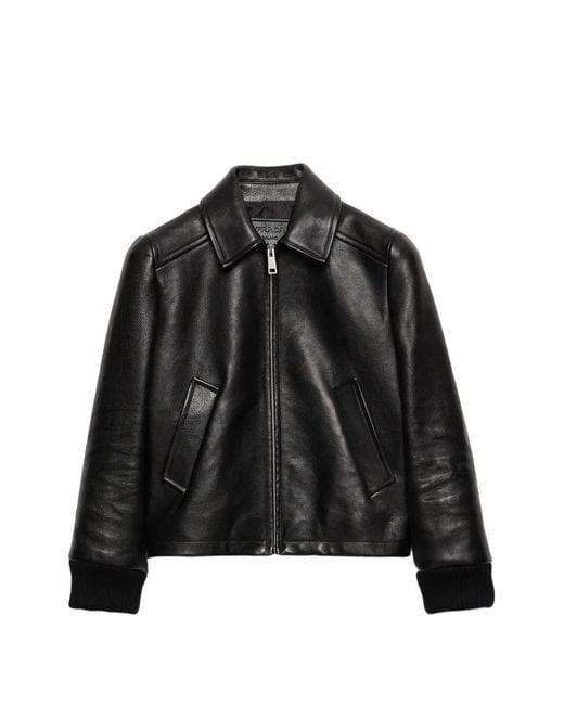 熟練クラフツマンシップで再解釈されたレザージャケット。タイムレスな素材のニュアンスや特性を活かしたデザイン。ジップクロージャーとシャツスタイルカラーを配したクリーンなシルエットが特徴のブルゾンジャケット。万能でコンテンポラリーなスタイルを表現しています。 ライニング付き ストレートフィット クロップドスリーブ&リブニットカフス ウェルトポケット ストラップ&バックル付きヘム 背面にトライアングルロゴ Size: 36. Gender: Female. Material:バッファローレザー. カラー: ブラック