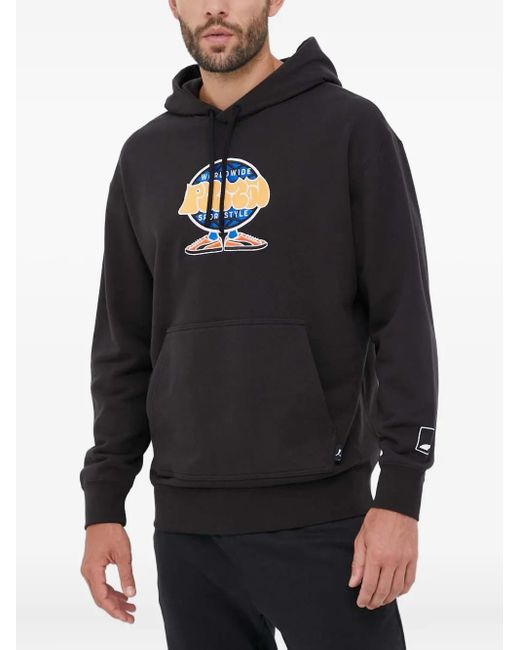 ブラック グラフィックプリント ドローストリングフード ロングスリーブ リブ編みのカフス カンガルーポケット Size: S. Gender: Male. Material:コットン/ポリウレタン. カラー: ブルー