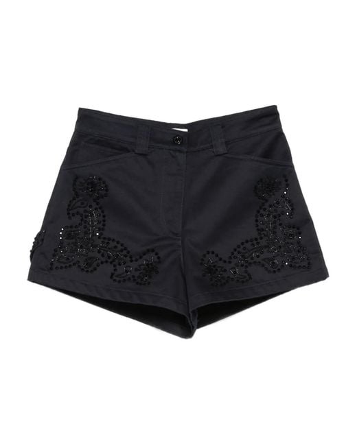 レディース ブラック エンブロイダリー ショートパンツ