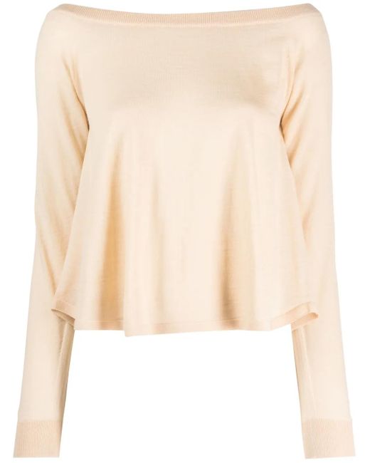Blushベージュ、バージンウール、ファインニット、バルドーネック、ロングスリーブ、リブ編みのカフス、カーブドヘム。 Size: XS. Gender: Female. Material:バージンウール.