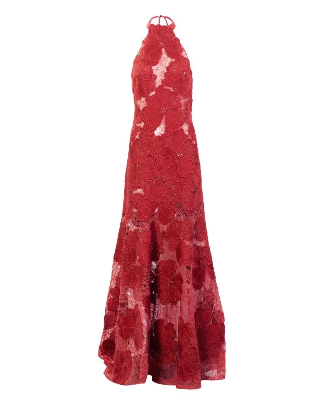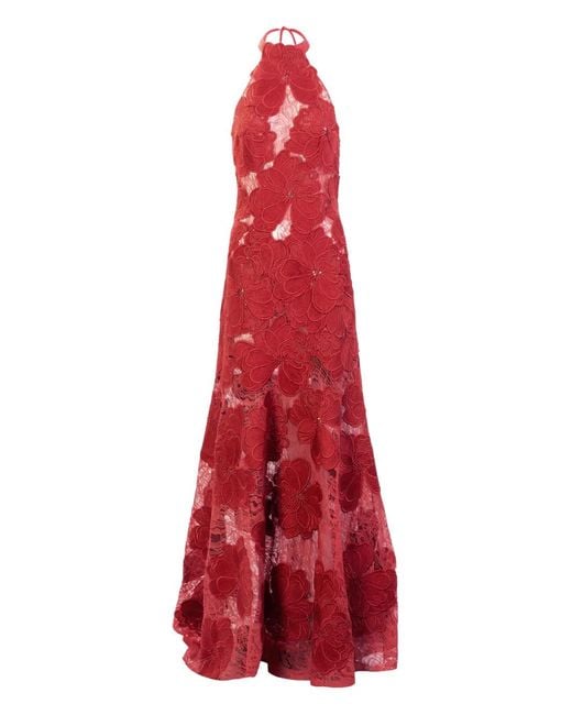 レディース レッド Mab フローラル レースマキシドレス