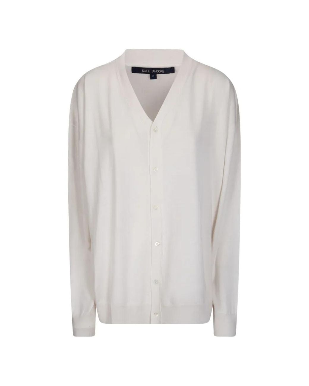 オフホワイト ウール ロングスリーブ ボタン留め Vネック Size: M. Gender: Female. Material:ウール. カラー: ホワイト