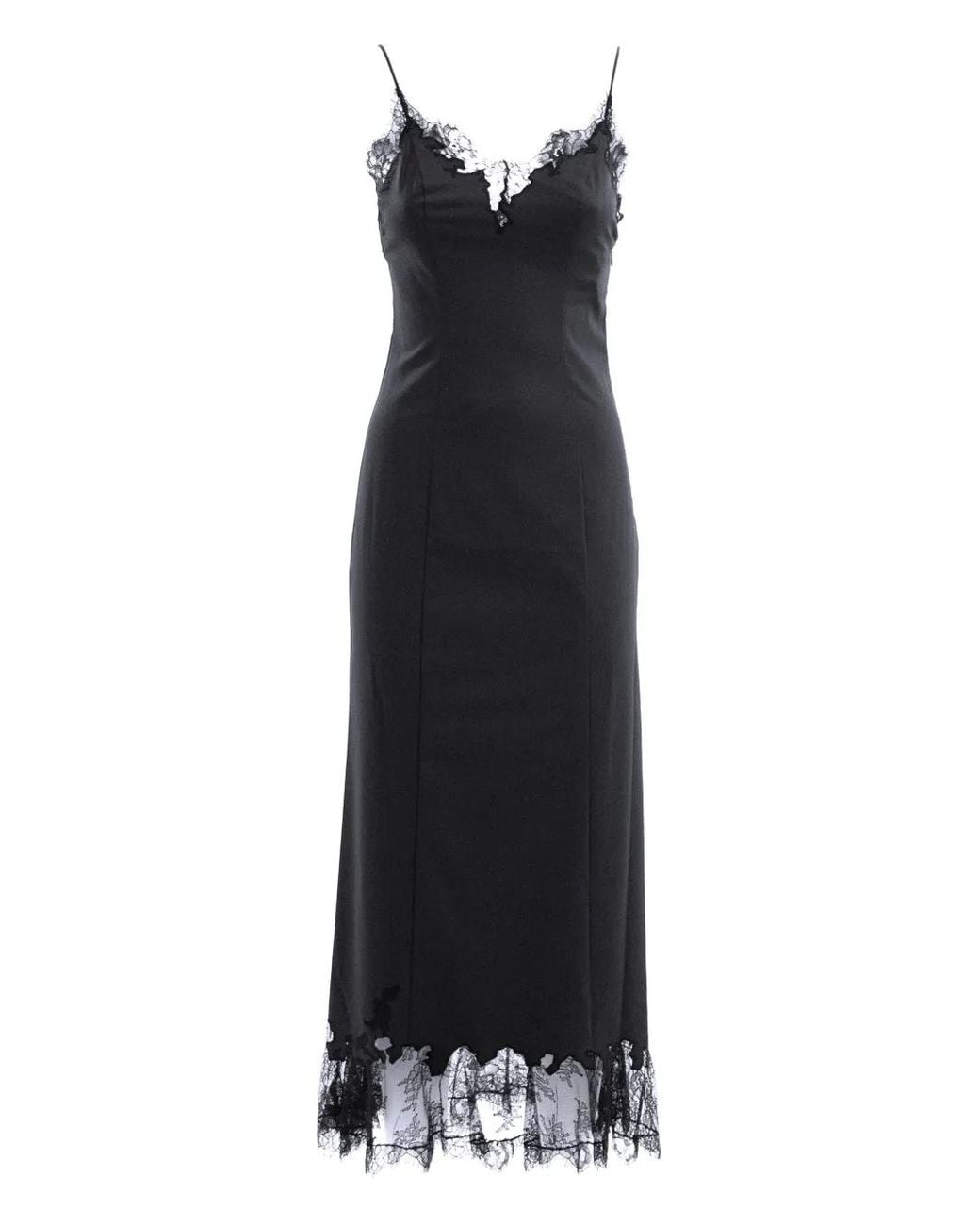 レディース ブラック レーストリム マキシドレス