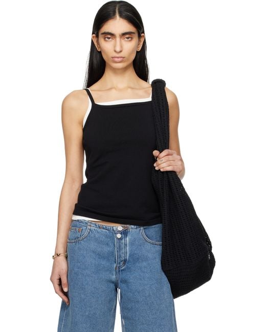 TENCEL(テンセル)混ジャージのキャミソール。リブのスクエアネックとスパゲッティストラップ。 サプライヤーカラー:Black カラー: ブラック