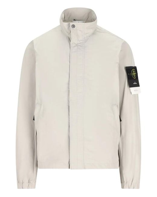 グレー ロゴパッチ ハイネック ファスナー ロングスリーブ 伸縮性の裾 Size: S. Gender: Male. Material:ポリエステル. カラー: ホワイト