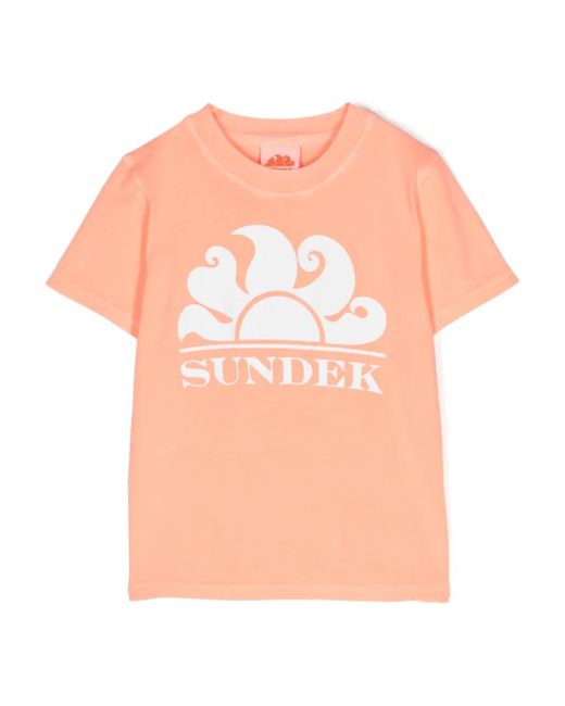 ネオンオレンジ コットン ライトウェイトジャージー フロントにロゴプリント クルーネック ショートスリーブ ストレートヘム Size: 8歳. Gender: Unisex. Material:コットン. カラー: ピンク
