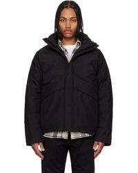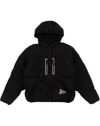 キルティング加工を施したポリエステル リップストップのダウンジャケット。 ・フードにドローストリング ・ファネルネック ・3つボタンのプラケット ・フラップポケットとパッチポケット ・リブの袖口 ・サイドシームにジッパー ・リップストップの総裏地 サプライヤーカラー:Black フィル:ダウン95% フェザー5% カラー: ブラック