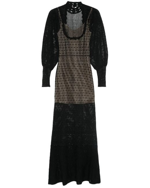クロシェパネル マキシドレス - ブラック