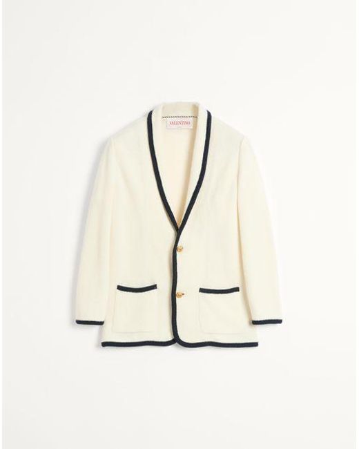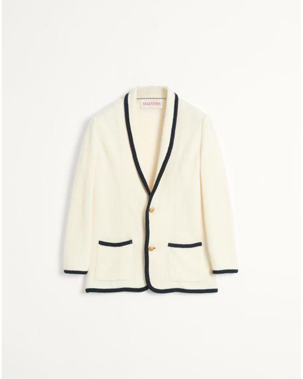 ヴァレンティノ トーションパイピング ウール x コットン シングルブレスト ジャケット - レギュラーフィット - ファインネス:7 - トーションパイピング - ボタンによる開閉 - フロントにフラップポケット x 2 - 素材:バージンウール 87%、コットン 13% - 着丈:74cm(首後ろから)サイズ M - モデル身長 187cm、着用サイズ M - イタリア製 スタイルを完成させる、ヴァレンティノ ガラヴァーニの 9TO5 バッグと Bay By Bay シューズ
