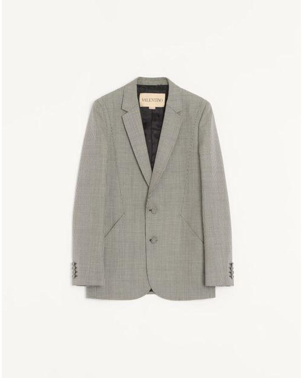 ヴァレンティノ ハウンドトゥースパターン ウール シングルブレスト ジャケット - スリムフィット - ライニングあり - 軽量フルキャンバス構造 - 全体にハウンドトゥースパターン - フロントウェルトポケット x 2 - 素材:ウール100% - ライニング:ビスコース100% - 着丈:75.5cm(首後ろから)イタリアサイズ 44 - モデル身長 187cm、着用サイズ 44(イタリアサイズ) - イタリア製 スタイルを完成させる、ヴァレンティノ ガラヴァーニの Vlogo Signature シューズ カラー: グレー