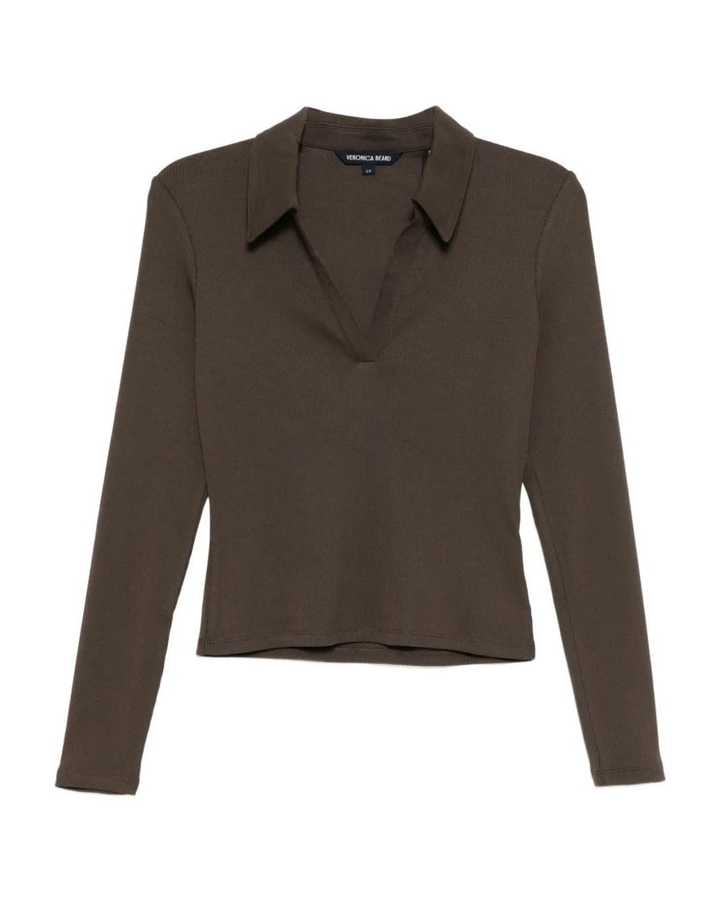 ダークアンバー ジョニーカラー Vネック ロングスリーブ Size: XS. Gender: Female. Material:コットン/ポリウレタン. カラー: ブラウン