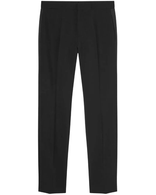 ブラック コットン/シルク モヘア&ウールブレンド ロゴアップリケ センタープレス コンシールボタン&ジップ式開閉 テーパードレッグ サイドにセットインポケット x 2 バックにダブルパイピングポケット x 2 ストレートな裾 Size: 44. Gender: Male. Material:ウール/モヘア/コットン/キュプラ/シルク.